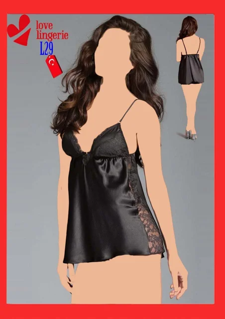 لباس خواب ساتن بغل دانتل دامنی لاو لاینجری کد L29