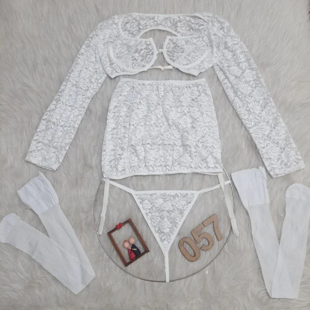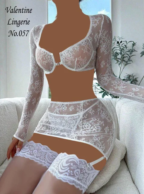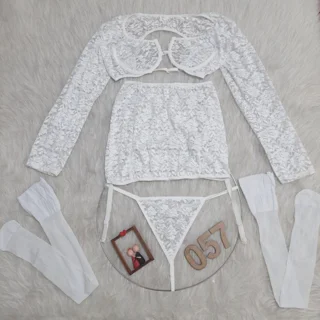کاستوم یا لباس خواب عروس چهار تکه با سوتین فنردار Valentine کد 057